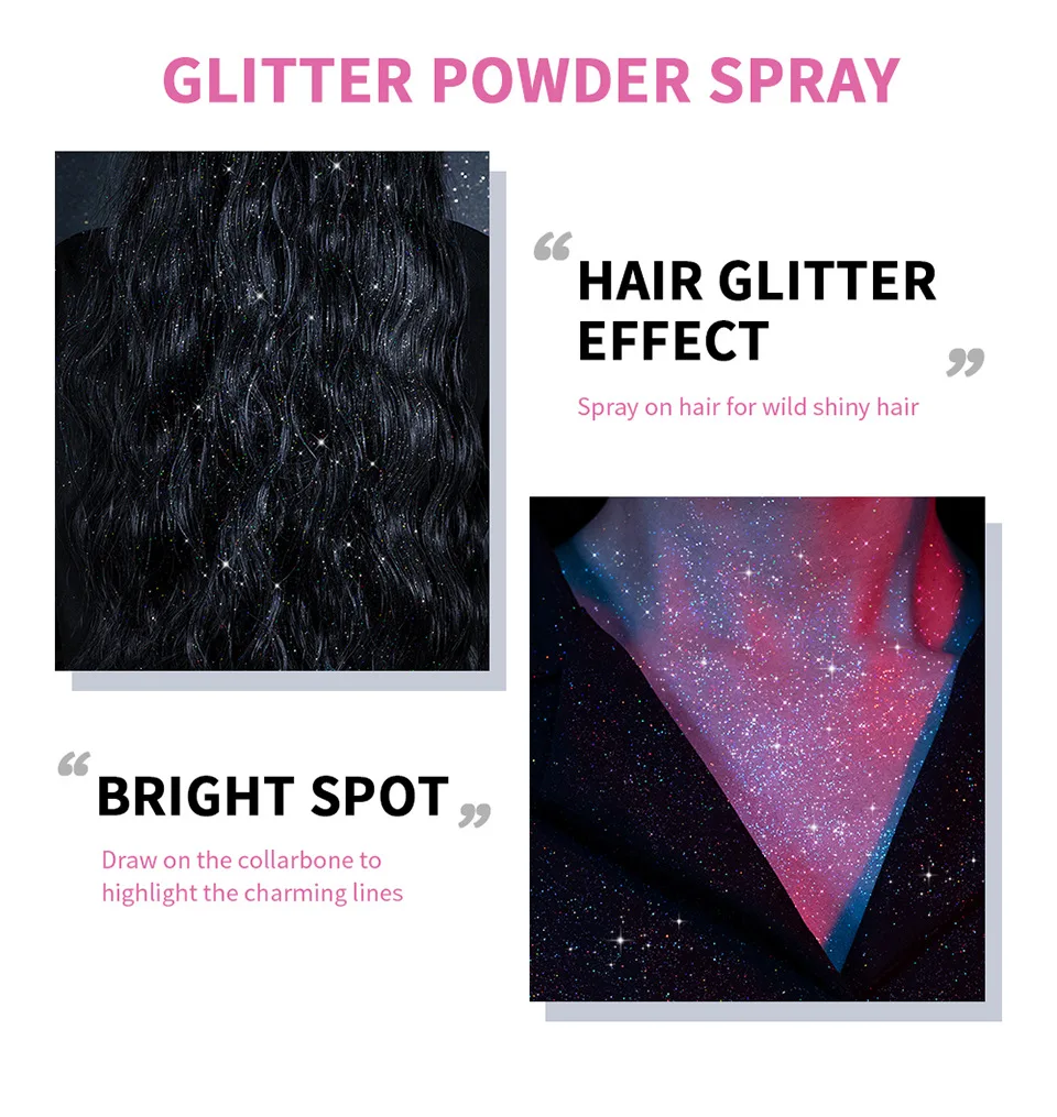 shiny glitter spray/shiny high gloss glitter powder/glitter powder spray :hair glitter effect spray on hair for wild shiny hair
